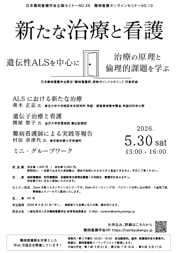 「新たな治療と看護〜遺伝性ALSを中心に治療の原理と倫理的課題を学ぶ〜」